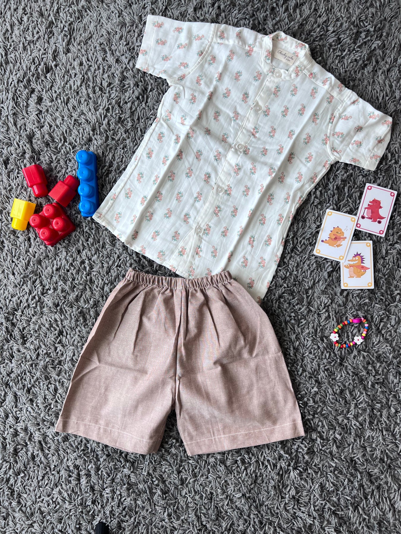 Extremely comfortable, soft and breathable set with Chinese collared button top and slip-on bottom.