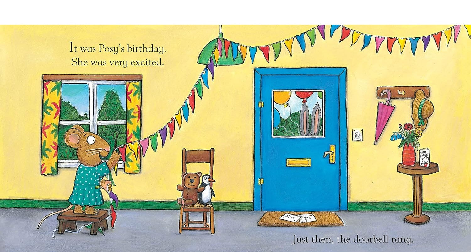 When Pip comes to Posy's house wearing a scary monster mask, he gives Posy a bit of a fright! Oh, dear!