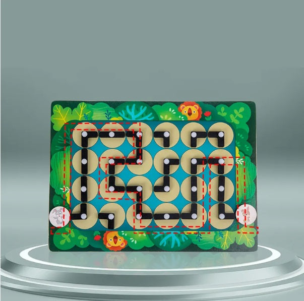 This game is designed in a way for children to come up with their own route by manipulating the paths given on the game board. There are multiple variations by interchanging the placements of the characters. This improves their problem-solving skills.